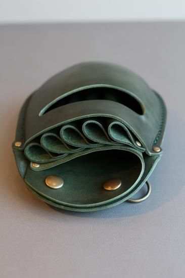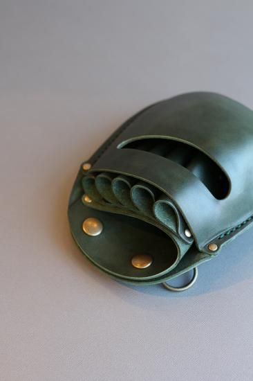 カラーはグリーンを使用し、使っていくほどに革特有の味わいが出るため長年にわたってご使用いただけます。(金具はアンティークゴールドになります)